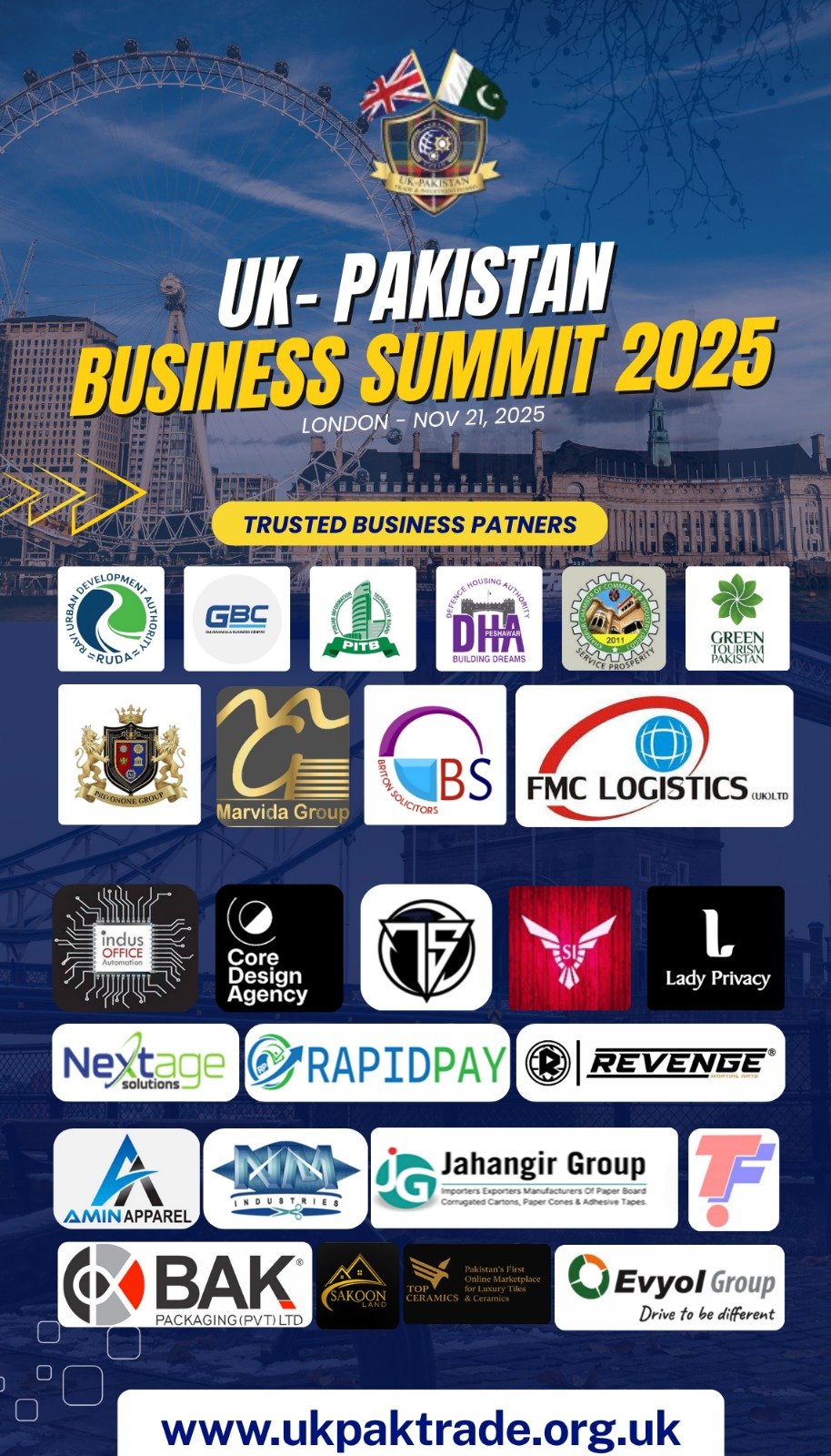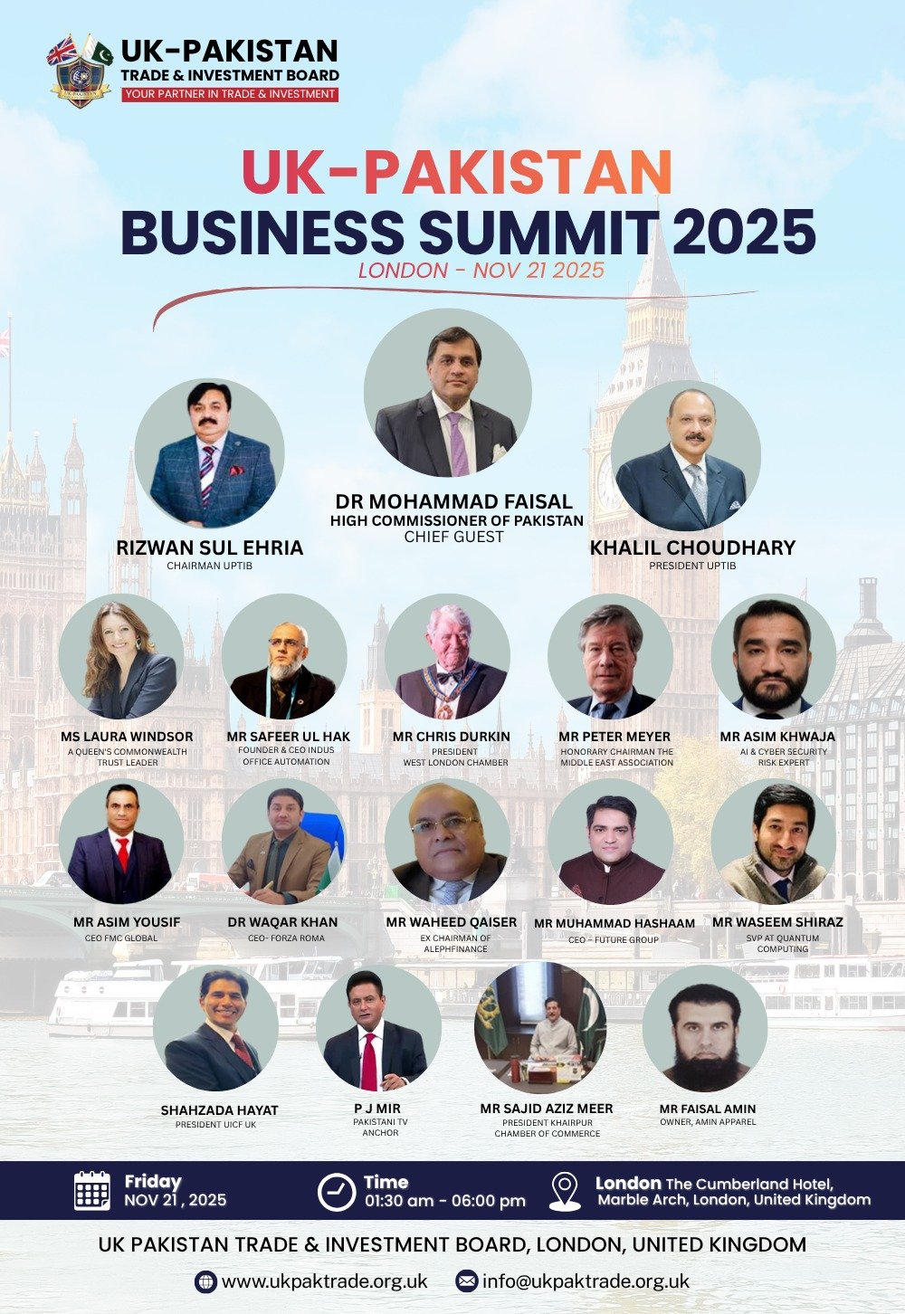Disclaimer: The information contained in this website is for general information purposes only. The information is provided by UK-Pakistan Trade & Investment Board Ltd, London, and while we endeavor to keep the information up to date and correct, we make no representations or warranties of any kind, express or implied, about the completeness, accuracy, reliability, suitability or availability with respect to the website or the information, products, services, or related graphics contained on the website for any purpose. Any reliance you place on such information is therefore strictly at your own risk.
